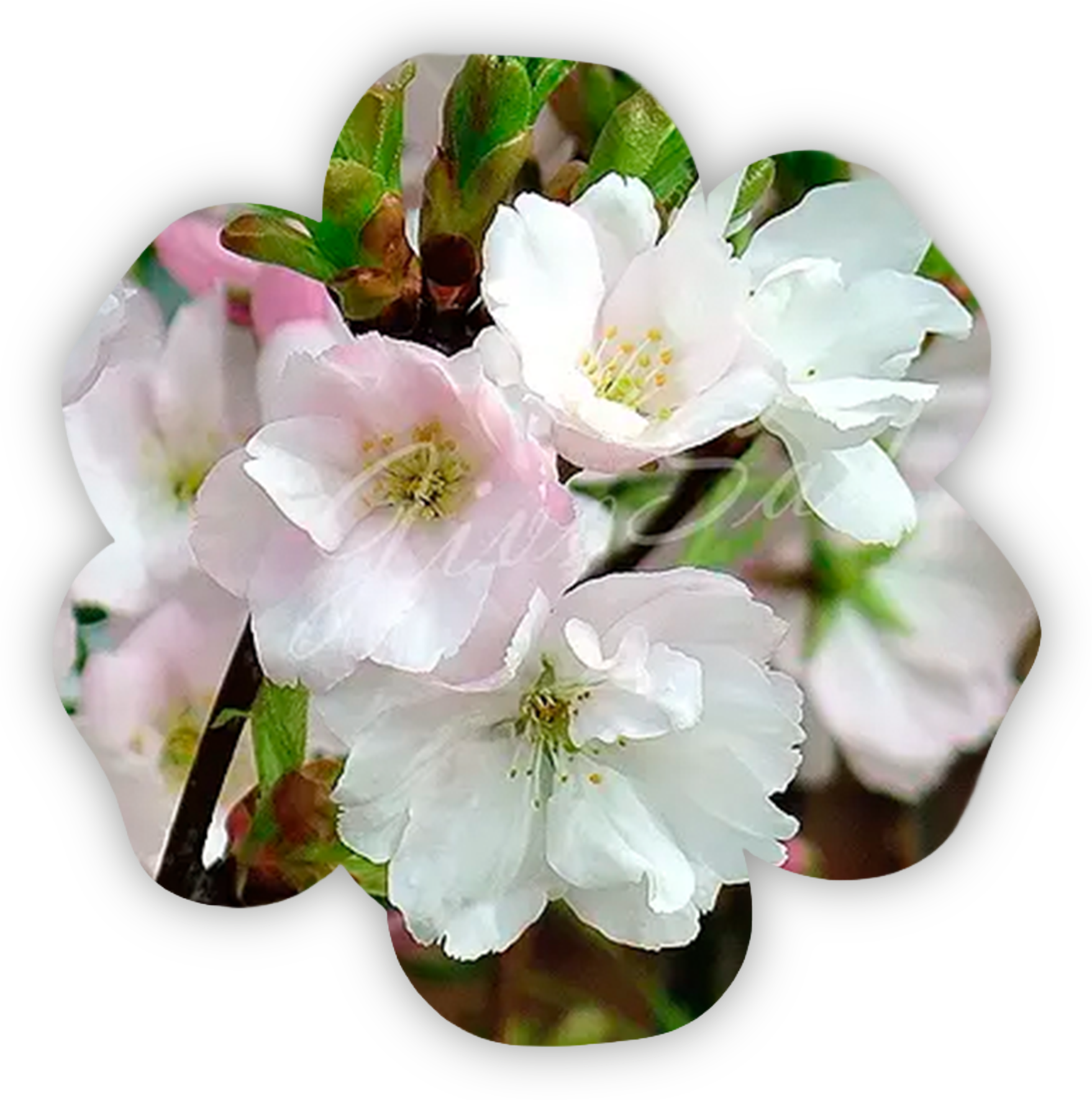 "Окаме" – гибрид вишни Фудзи (Prunus/Cerasus incisa) и вишни тайванской (Prunus/Cerasus campanulata).Это эффектное декоративное вишневое дерево с округлой густой кроной